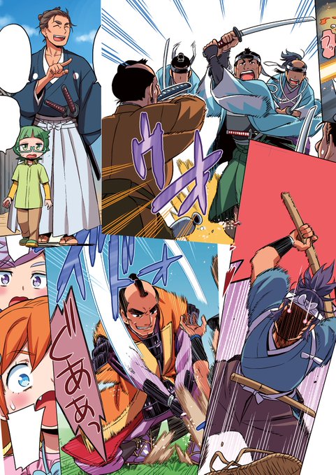 【告知】『歴史漫画タイムワープシリーズ・最強の剣豪へタイムワープ』、本日発売です。 主役がこれまでのエマ・ケンジから4人の新キャラにバトンタッチ。タイムワープをしながら日本史上の剣豪たちを集めて最強決定試合を行う!小学生諸君は読むしかないぜ!読んでくださいおねがいします。 https://t.co/7BXJXPK0lh