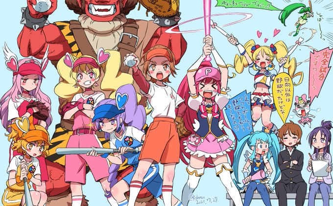 まぁそれはともかく、本日のプリキュアソフトボール選抜軍。 一人足りなくてナインになってないのは気にしてはいけなくてよ?なぜならこれ以上増やすと描くのがしんどくて死ぬから。
