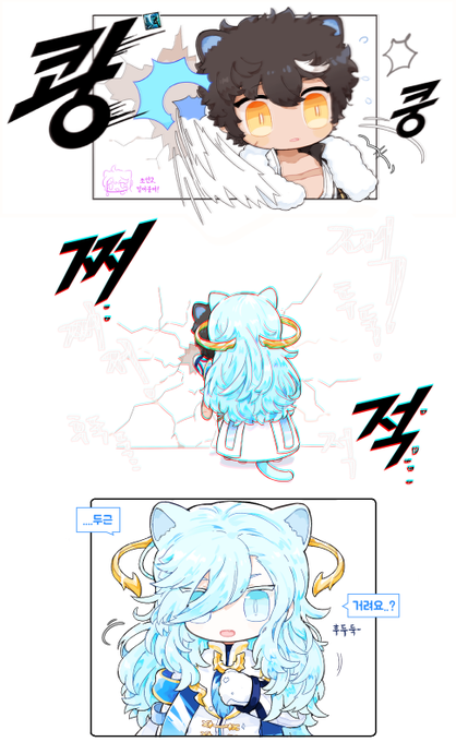 지각벌로 민레,.,.,,지각해서 화난 도미니가 리퀘였는데 생각나는게 고양이뿐