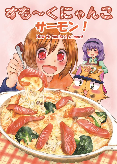 新刊1冊目「すも〜くにゃんこサーモン!」漫画でHow toスモークサーモン本です。グラタンで召し上がれ!A5サイズ32ページ300円。 #C89 #燻製 #新刊 #冬コミ一次創作宣伝