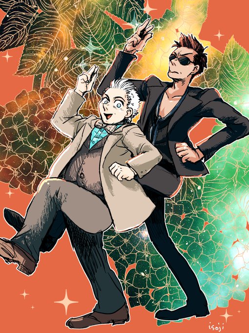 で〜き〜た〜! 何も考えずに背景作ったらなんというアンバランス! でも珍しくちゃんと色塗ったからタグもつけちゃうぞ〜 #GoodOmens #ineffablehusbands