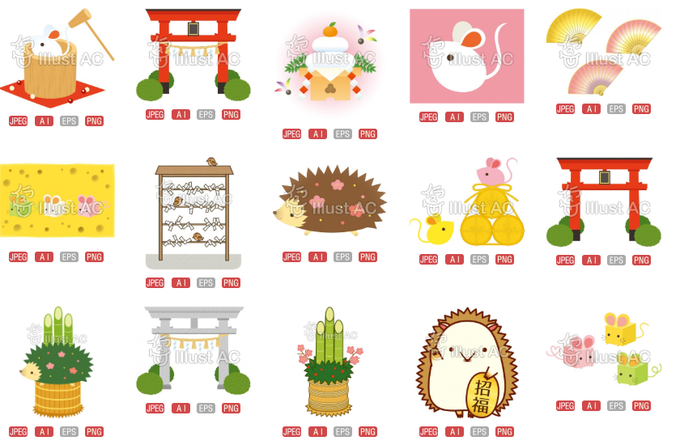 年賀状まだ作ってない~という方にぜひぜひ使っていただければウレシイ… リンク先のプロフィールページ検索窓で「年賀」と入力して検索するとこれらのイラスト素材が出てくるのです🎍 https://t.co/xHM3a34Dbm