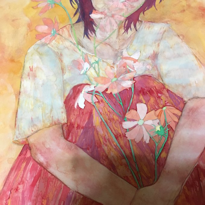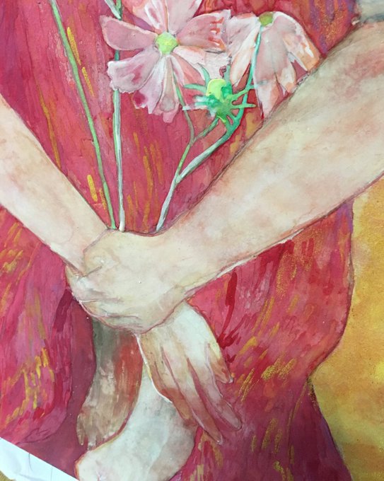 スカートの調節おわったらお花に視線が行くように描けたら終わり!(*゚▽゚*) この絵はスローペースだけどほんと楽しい 恩師には汚いって言われちゃったけどw