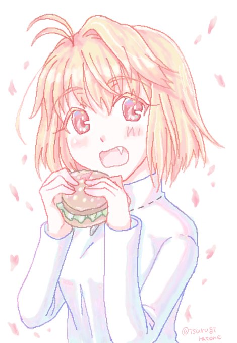 綺麗な桜を描いてくださった方がいらっしゃったので、花より団子(ハンバーガー)なアルクェイドです。
