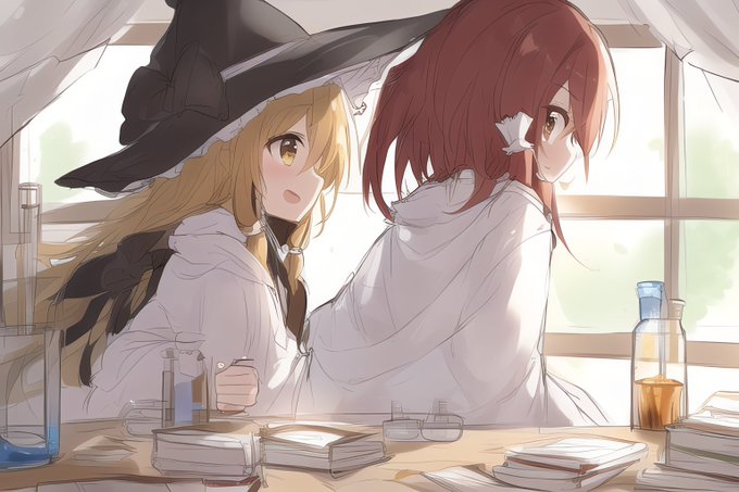 少女魔理沙と少年霊夢 #東方 #NovelAI #NovelAIDiffusion #東方Project #博麗霊夢 #霧雨魔理沙 https://t.co/XspwIgVknE