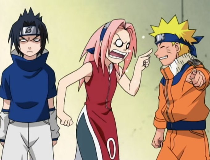 the way sakura and naruto went through whole range of emotion and sasuke's face stayed the same