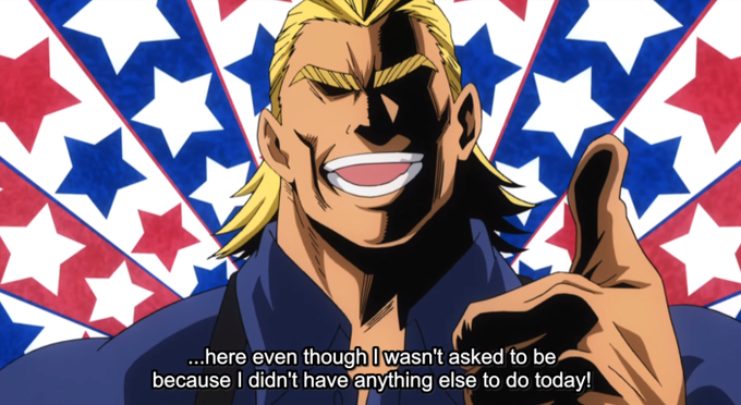 all of all might's variations of "i am here" are so funny