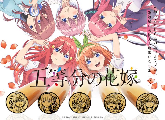 TVアニメ『五等分の花嫁』から婚姻届にも使える印鑑が発売開始です!