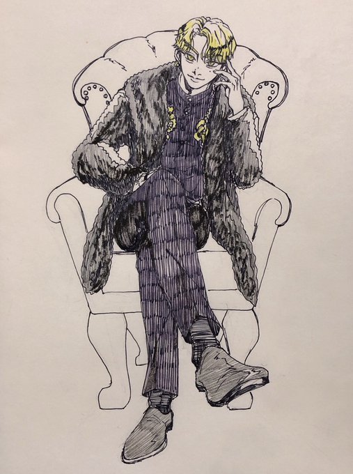 あまりにもペンを持たなさすぎてリハビリにポーズ参考書見てちょっとアレンジして描いたら椅子飽きちゃったからもうこのまま載せるしアップ見といてください。