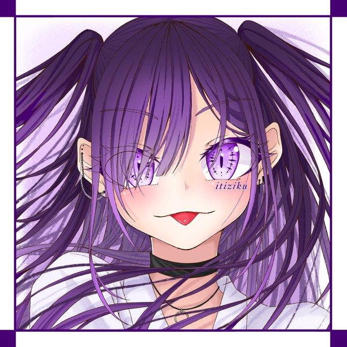 上げ直します。ツインテ、サイドアップ、つり目、青髪、白髪、インナー、メッシュ、ピアス、二次創作が好きなマイペース絵師
