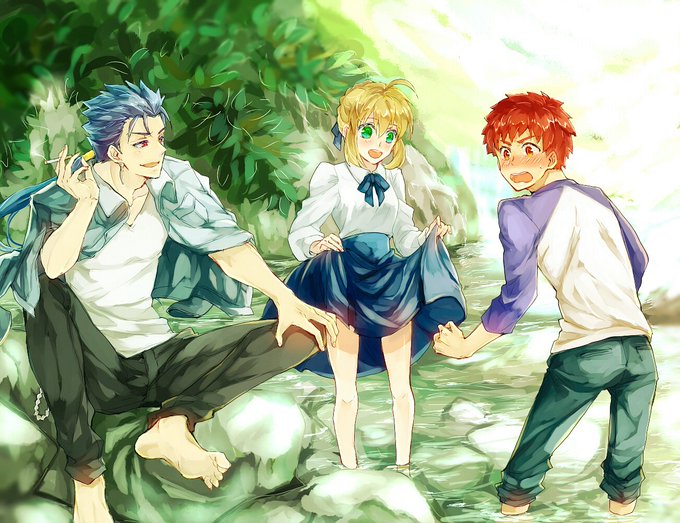 士剣+槍 この間上げた川遊び絵の続き ずーっと下書きのまま放置してたけど、やっと描けた(汚いけど)