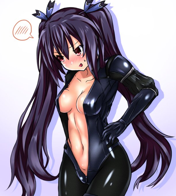 コスプレしてたら予想以上に前が開いた服で恥ずかしがりつつもついポーズをとっちゃうノワールらくがき