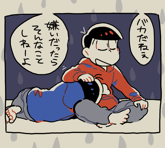 糸電話産長兄松の「嫌いだったらそんなことしねーよ」という台詞を使った1コマ漫画を描きました
