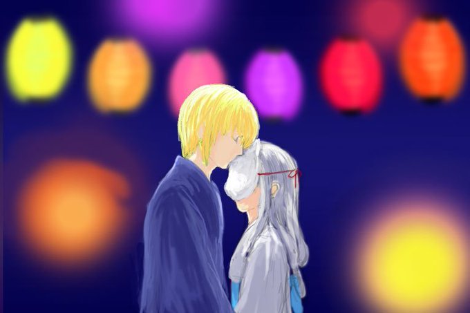 #今日で1年も半分なので1月と今の絵を比較してみましょう 1月のは出会いで最新のは新婚旅行でした。