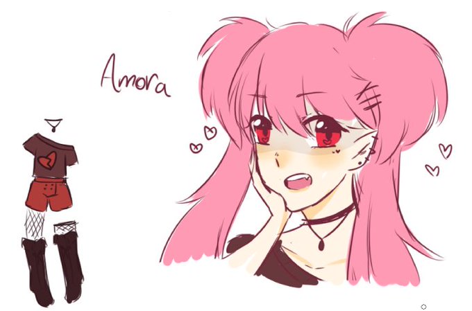 @Merry_Dial Amora é uma vampira filha da PII que gosta de separar casais sugando o sangue por meio de um beijo. Se ela estiver apaixonada por alguém, ela fica obcecada, principalmente se for humano, e começa a stalkear e ameaçar as pessoas íntimas de quem ela gosta. É SÓ UM ESBOÇO MAS CONFIA