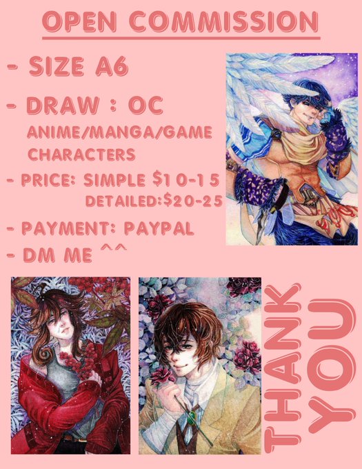 @Naune9 Hi~ I'm just gonna drop my info and some art samples just in case if you're interested in traditional art and if you don't mind to be put on waiting list ^^ I'd be happy to draw for you. Thank you and have a nice day ^^🌻