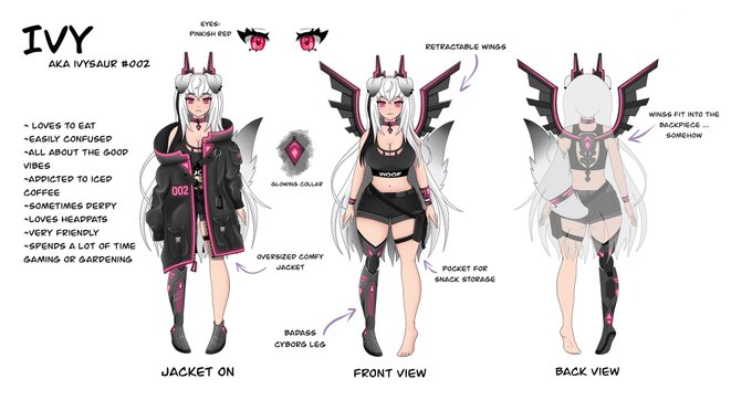 Updated reference sheet with new hair and eye colour (っ◔◡◔)っ 🖤 #Vtuber #oc #ENVtuber #streamer #twitchstreamer #Vstreamer #digitalart