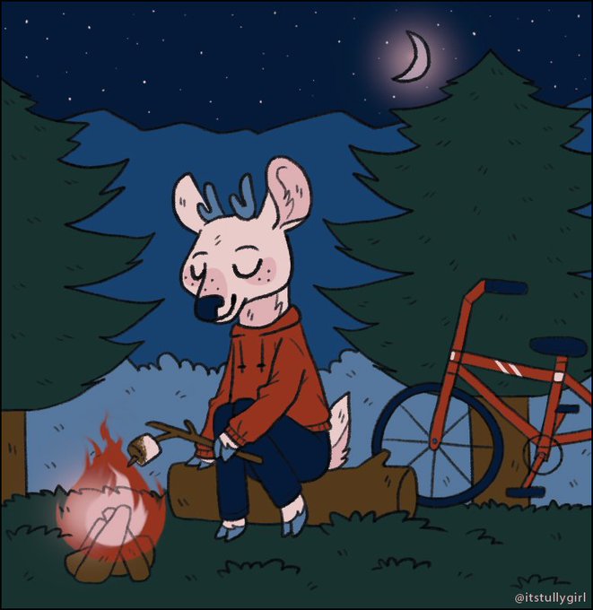 Lil deer I drew for the emoji prompt thread I made. Rly happy w this one ~ 🦌🚲🏞️