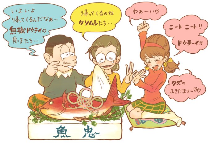 弱井さんとこのお嬢さんが鯛を持って2期のお祝いにきてくれた トト子ちゃんは超絶かわいいので、松野家では何言っても許される🐟