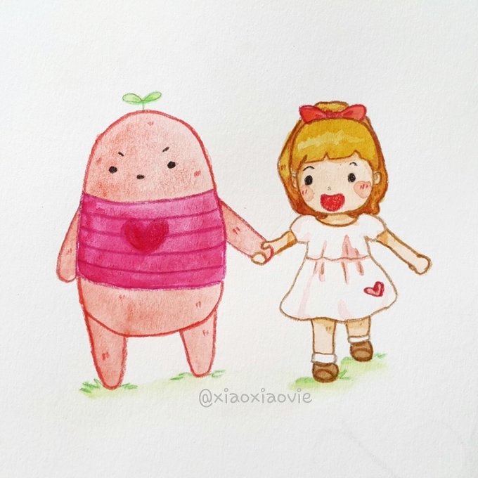 #pinkmonster #girl #chibi #illustration #watercolor #sakurakoi