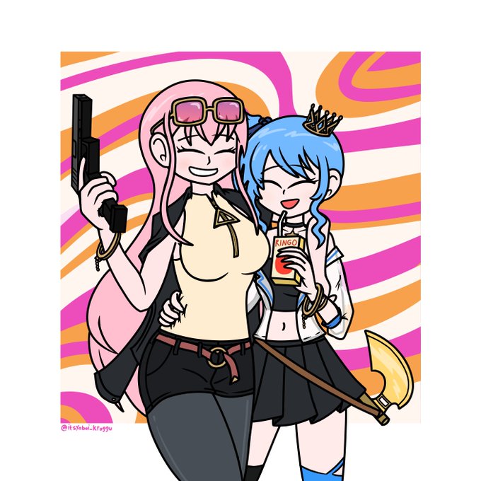 i know i'm 5 months too early to celebrate calli x suisei's getcha cover's 1st anniversary but i still wanna draw them together dang it