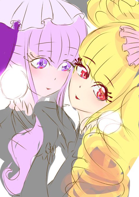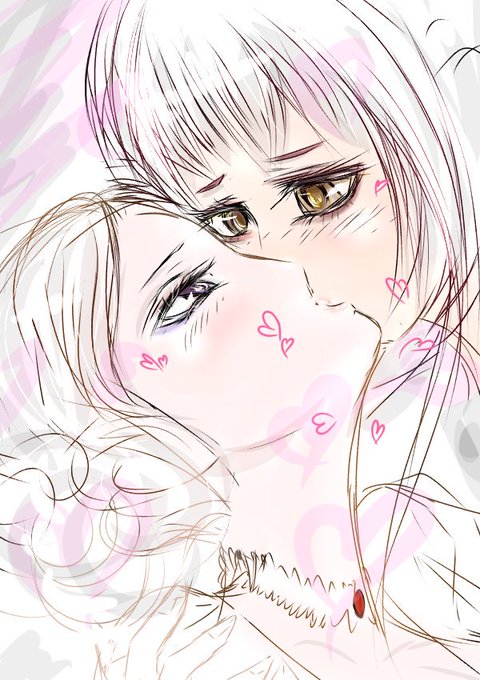 #創作 #百合 黄色目「ちょ…ちょっとキスの時ぐらい目をつむってくれよ…////」 紫目「なんで?貴女が見えないじゃない?」