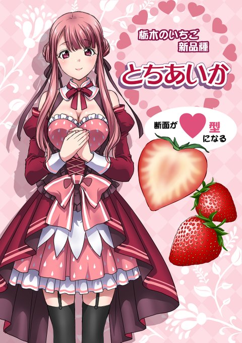 栃木県が開発したイチゴ新品種「とちあいか」を擬人化してみました。断面がハート型ということで、慈愛を感じさせる大人の女性にしてみました。