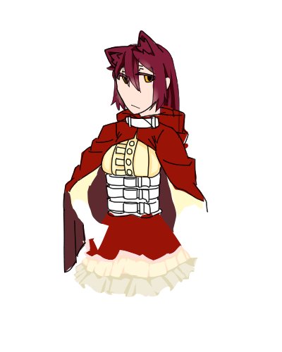 一時間でここまで。 多分膝上くらいまでは描くかな。ラフと塗り。 たしかムエさんがリツってたスチームパンク系の服を模写、髪色も合わせて赤寄りに……フリル難しいけど描けるようになったら嬉しい
