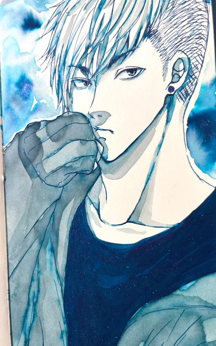 尚貴堂さん(@sho_kido )さんのサブスクインク、Blue infernoとOil clayを使って創作男子を描いてみました。