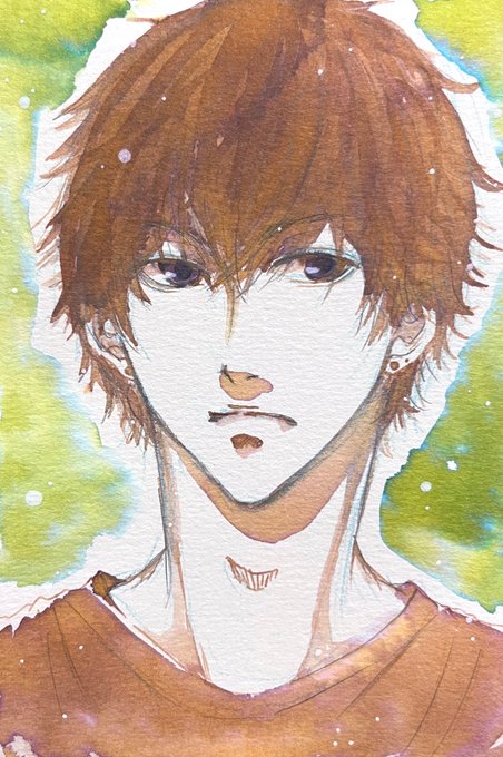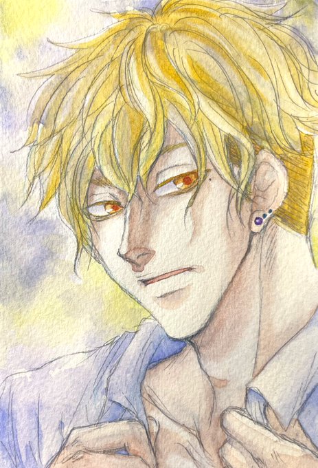 創作男子を描きました☺️低血圧で朝は苦手〜で支度してるイメージ。ラメは分かりづらいかも。目とか背景とかシャツとかひっそりと😌✨