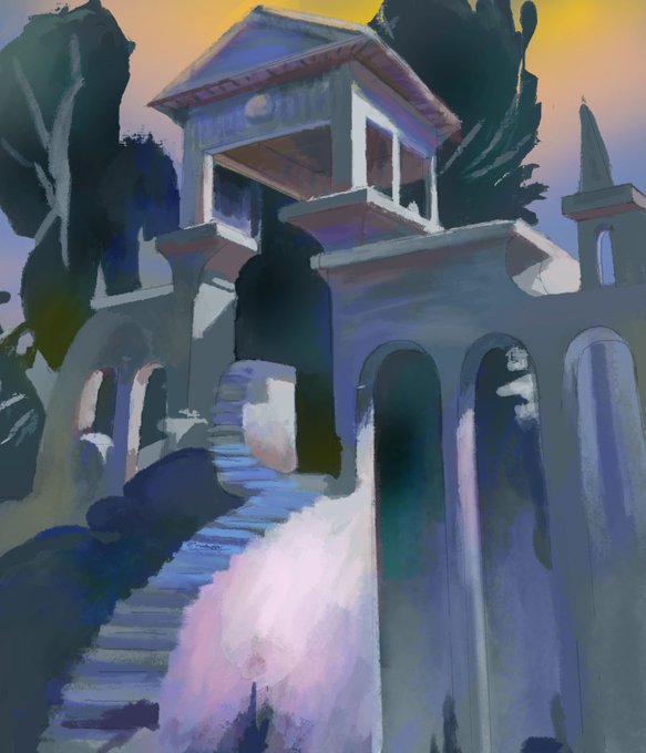 I haven't drawn anything for myself lately, but I have been practicing backgrounds with Nathan Fowkes' courses on @SchoolismLIVE I'm really enjoying painting this time! #painting #schoolism #drawing #digitalart