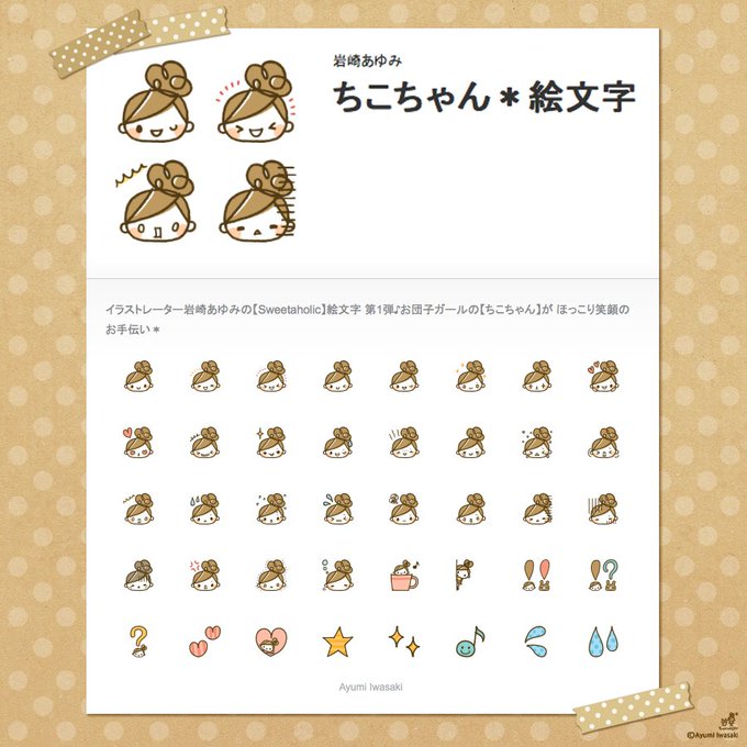 LINEアプリの「その他」→「スタンプショップ」→「岩崎あゆみ」で検索して頂くとスタンプも絵文字もご覧頂けます♪