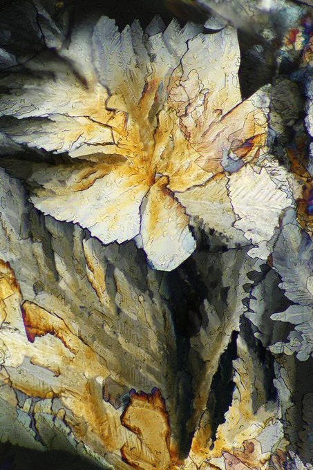 Lee Hendrickson's #photomicrography of crystals include intricate structures from wine, chocolate, caffeine, citric acid, to acetaminophen that transform into vivid colors and mesmerizing patterns. https://t.co/iLREcztTKC