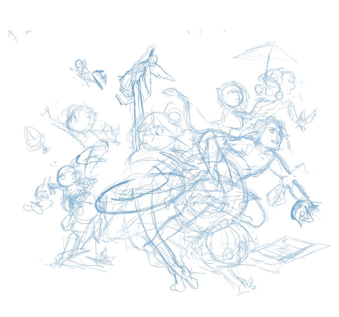 この絵はラフ描いてたはず!と思ったら描いてなかった 1枚目はラフじゃなくて下書きです…