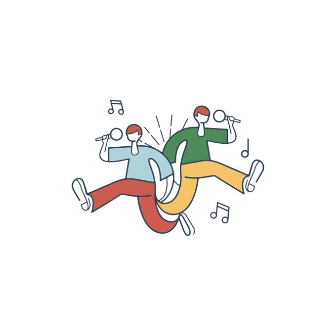 昨年と通ずる印象を残し、あれ!これって?となるようにしつつも、今年は、楽しい!が溢れる線を心がけながら。飛び出す奥行き感を、曲線で表現しながら、つい歌い動きたくなるような、そんな動きを感じられる絵を心がけました。
