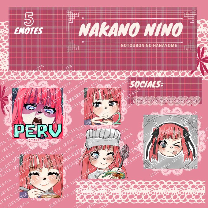 ヾ(≧▽≦*)o just in time for the one week anniversary of the Japanese release of the Quintessential Quintuplets, my set of Nino premade emotes have just been released on my payhip shop (https://t.co/ZBfYjSWFG1