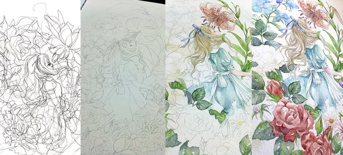 アリス展に向けて描いたもう1枚の制作過程。8角形の額に入れることを想定して描いてます。#ガチ制作会