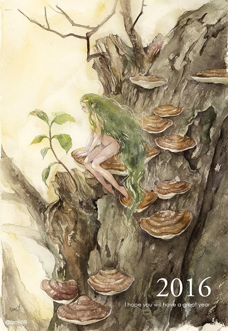 遅くなりましたが、今年もよろしくお願いいたします。今年も楽しくお絵かきしたい。木を描いている間に年越しました。サルノコシカケ。