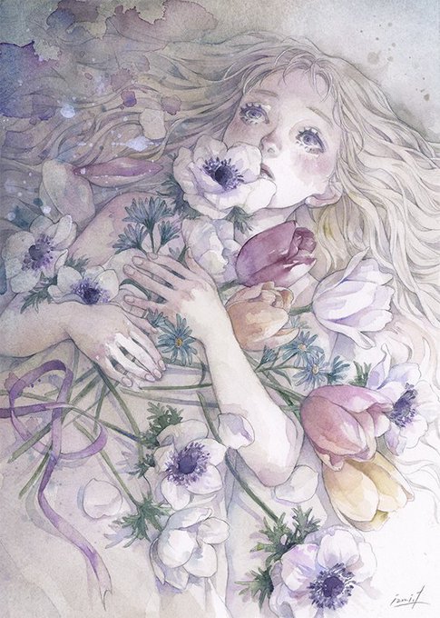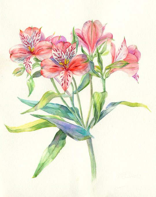 全部の花を自分で写真を撮ったり買ってきたりして、本当に採集記録のような絵です。にじみを生かした水彩らしい塗り方もかなり意識してます。資料を集めること、技法の研究、今に繋がっています。