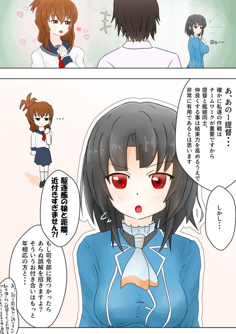 高雄VS電のマンガっぽいの 一回、色まで塗ったけど出来に納得いかず まっさらにして描き直したのですげー時間かかった #艦これ #高雄 #電