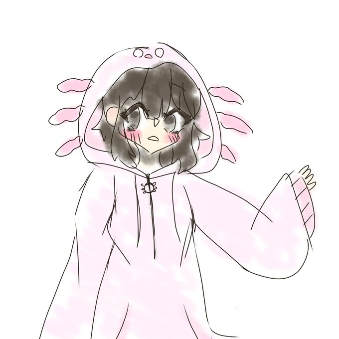 あの、すごく分かりにくいんですけど、こんな感じのウーパールーパーのパーカーがめっちゃ欲しいんですよ…。誰かに伝われぇ! #ウーパールーパー #パーカー