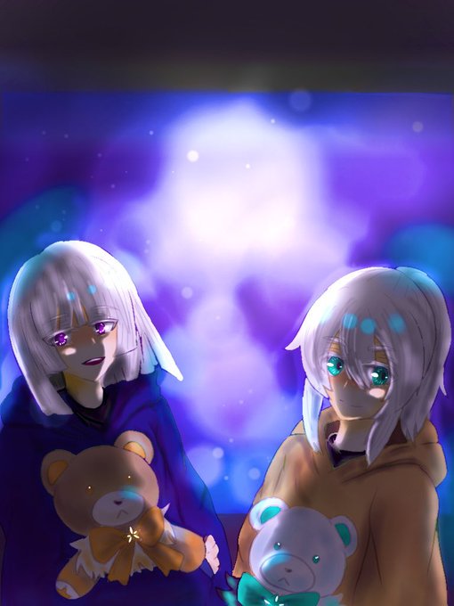 ようやく完成しました…!背後の絵は描かれている人物の潜在意識のようなイメージです。2人の詳しい設定は後日あげます。