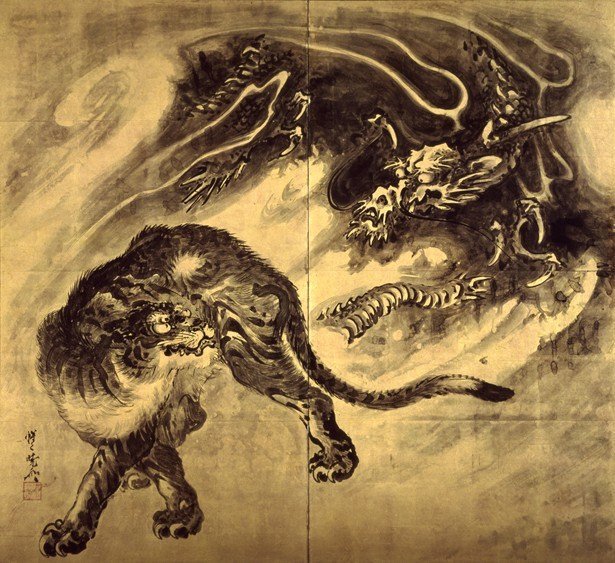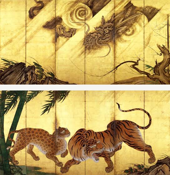 かっこいい龍虎図も勿論好き!右下の海北友松だけ龍単体だけど💦左上が橋本雅邦、右上が狩野山楽、左下が河鍋暁斎。