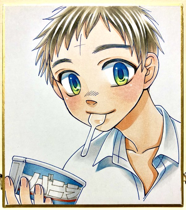 本日のお絵かき。うしおくんとアイスを色紙に描いてみた。 これ、背景どうしようかまだ悩んでるんだけど、このまま何もしないで終わりそう……