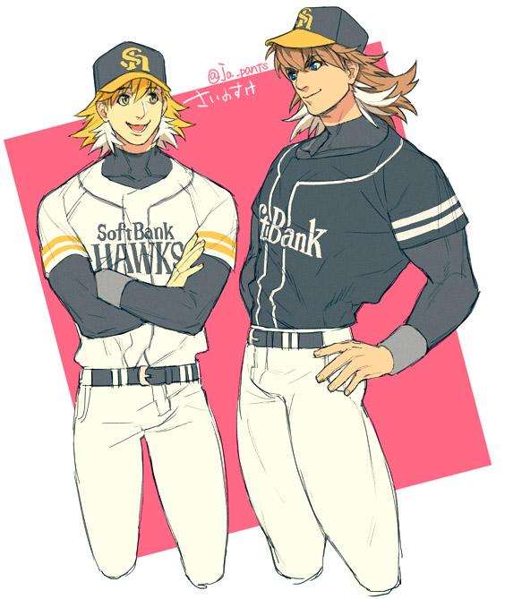 ちなみに、さっきのハリーホーク&ハーキュリーホークの体を描いてた時に「ジョジョの花京院と承太郎の体格こんな感じだったらいいな」と思ったのでソフトバンクホークス野球着の花京院と承太郎も