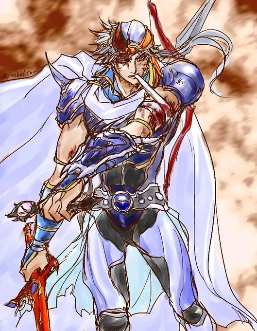 #今年も残りわずかなので今年一番伸びた絵を貼る見た絵描きさんも強制でやる エミューをおびき寄せるフリオニール&変なテーシャツ着た皇帝