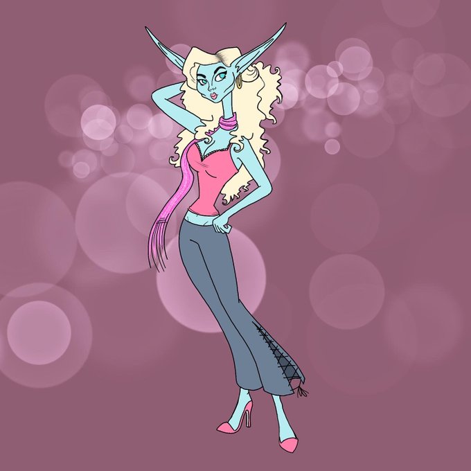Concept art for a future D&D character: An eladrin elf warlock named Isadora. She’s a noble heiress, socialite, and influencer. Her patron is her family’s money. ✨