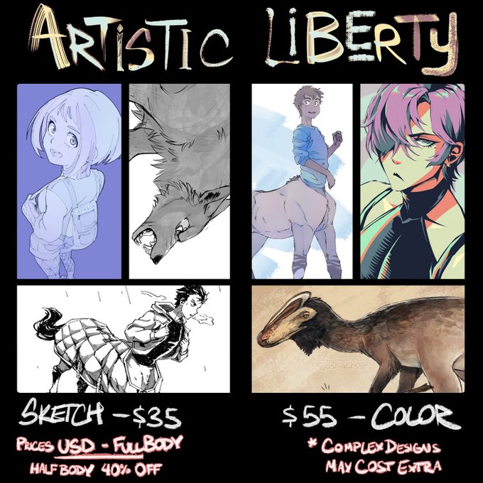 Giving my artistic liberty option its own post. Super excited to be open for these again. I love doing them.For info, please see my pinned or the link in my bio!