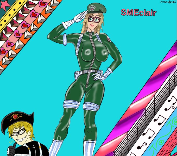 A bad ass fan art pin up of @SmEclair dress up the as the same battle body suit as my oc Eye Bound.