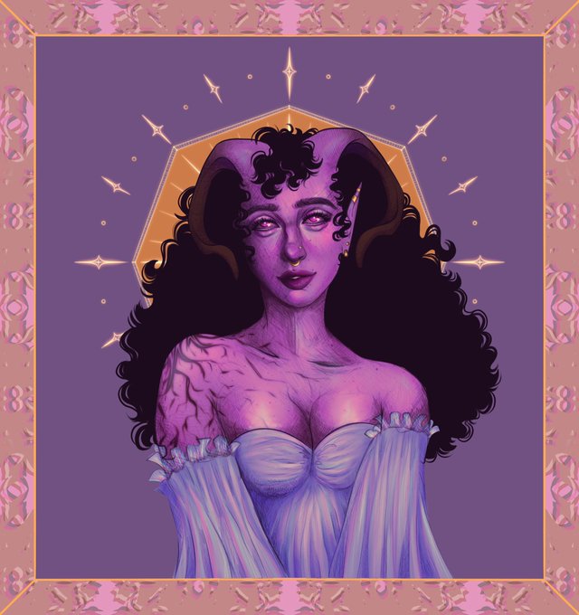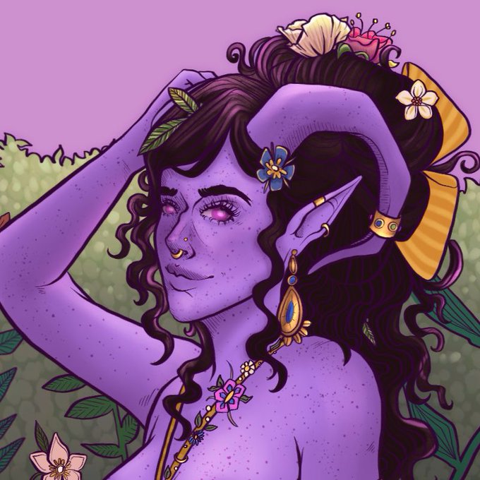 @warickaart This is my sweet girl, Eris! A feylost tiefling druid from my regency campaign 🥰💕✨